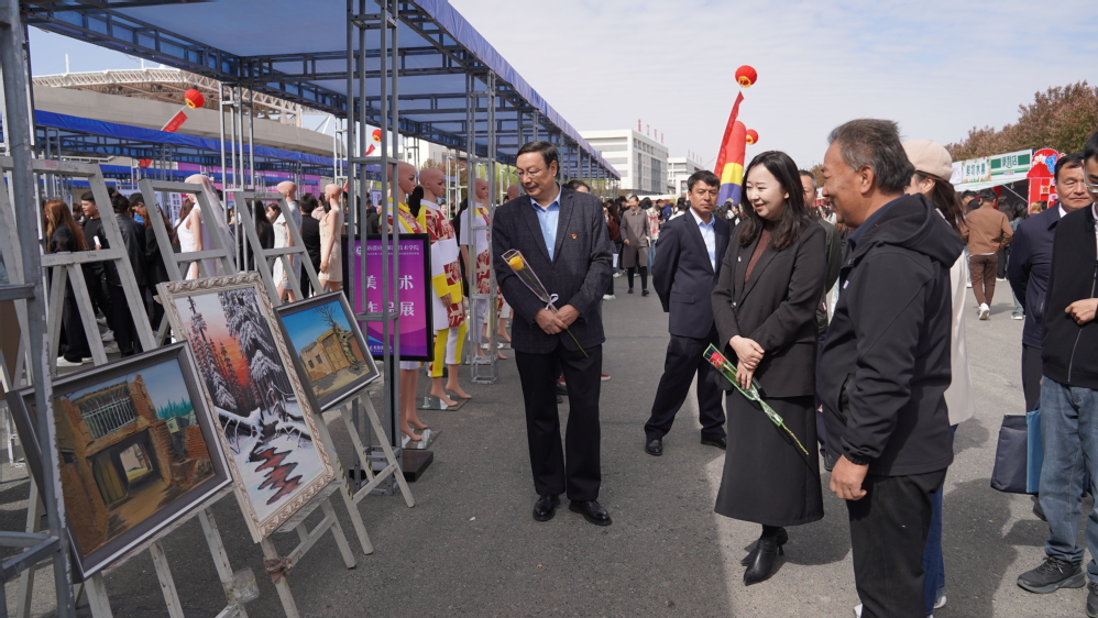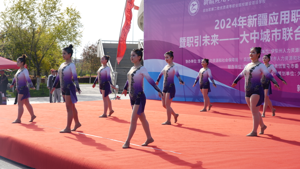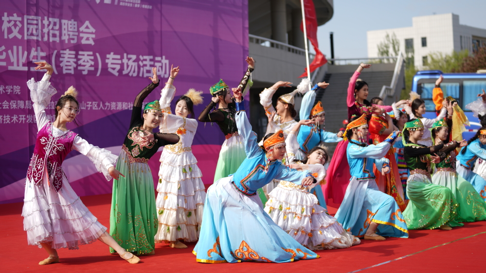 此次活动期间为展现新疆应用职业技术学院在落实立德树人根本任务,坚持“五育”并举,实施德育铸魂、智育固本、体育强身、美育浸润、劳育淬炼五大工程取得的成效,在活动开幕式前,学院开展了一场盛大的歌舞表演,现场展示学院学生的专业代表作品。