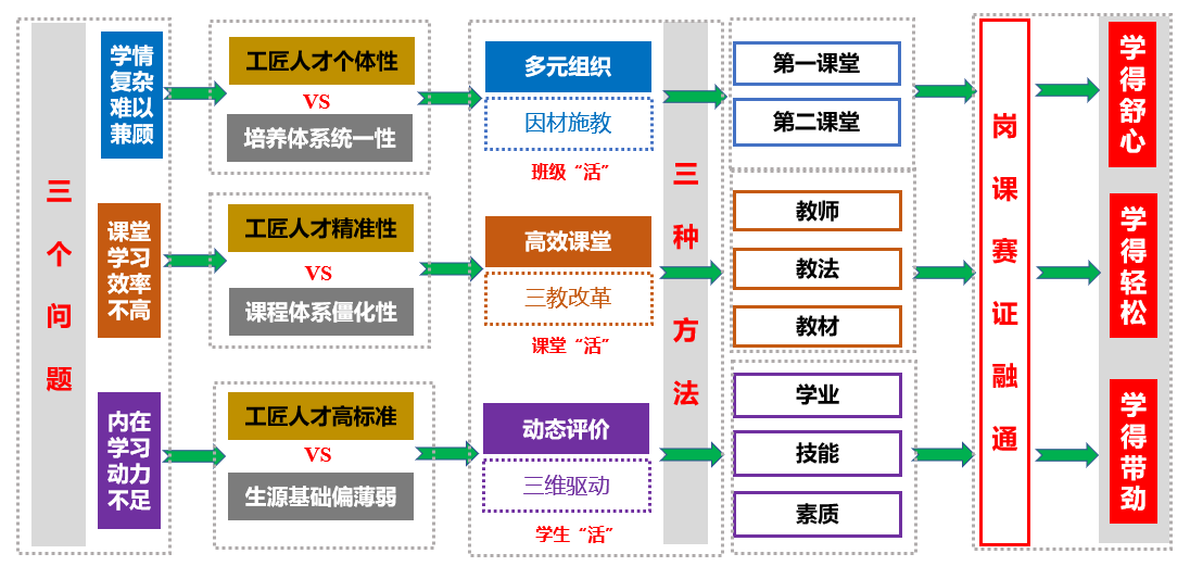 岗课融通,以岗组班,创建“因材施教”化工工匠人才多元组织,让班级“活”起来,实现“学得舒心”。