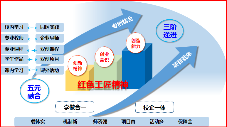 “红色工匠精神引领,五元融合,三阶递进”创新创业培养体系