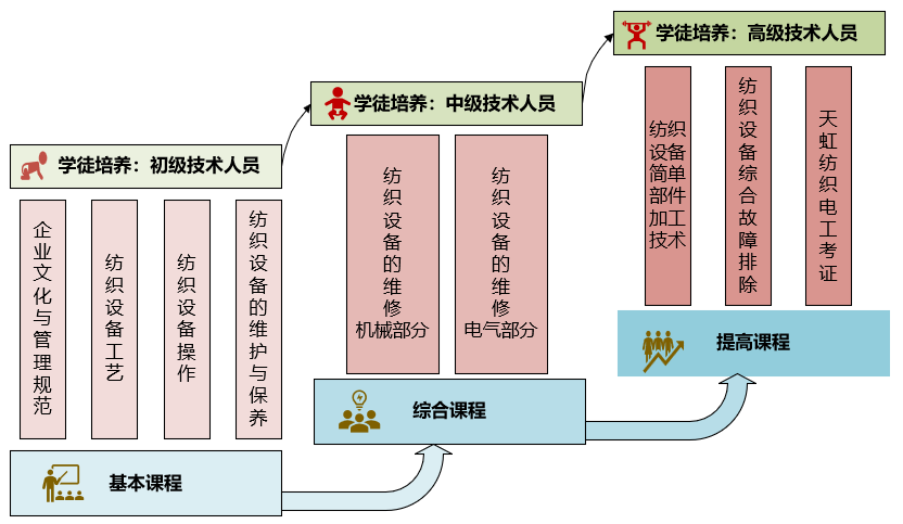 学院为进一步推动国家级现代学徒制项目建设工作,机电工程系与新疆天棉基业纺织有限公司建立了长效的沟通机制,依托“三合”模式,以“工作过程系统化”为导向构建“行动体系”课程,以“工学结合”为教学模式实现了课堂、实训场地与岗位的交替,教学主体实现了教师到学生的过渡。