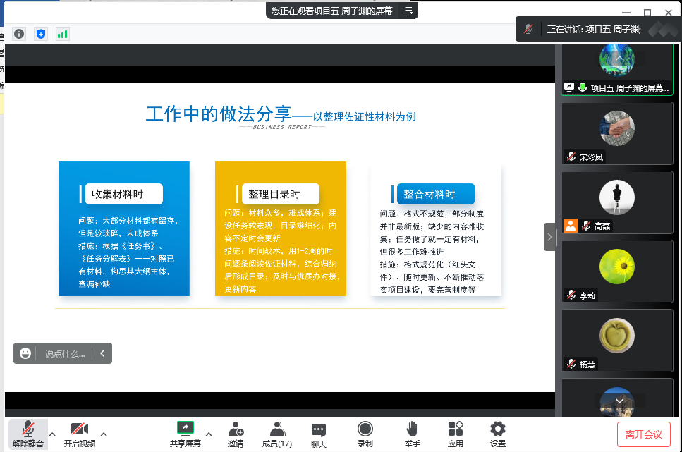 会上,优质校专干做了工作经验分享;各项目组专干汇报了上月工作情况,本月工作计划;交流了前期工作中出现的困难,佐证材料收集整理过程中存在的困惑,以及需要优质办协调解决的问题等。